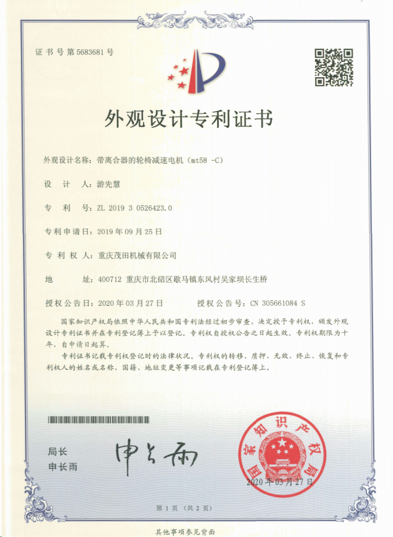 重慶茂田機械有限公司是國家級小巨人企業(yè)、國家高新技術企業(yè)、重慶市專精特新企業(yè)、重慶市知識產(chǎn)權優(yōu)勢企業(yè),致力于現(xiàn)代化山地農(nóng)業(yè)機械、各類非標減速電機及其控制系統(tǒng)的研發(fā)、生產(chǎn)、銷售。擁有重慶市市級研發(fā)平臺1個 目前研發(fā)、生產(chǎn)、銷售產(chǎn)品廣泛應用于農(nóng)業(yè)機械、醫(yī)療康復設備、交通代步工具、智能搬運設備、以及機器人動力系統(tǒng)等領域。我們的產(chǎn)品具有完整的自主知識產(chǎn)權,擁有多項專利技術及“重慶